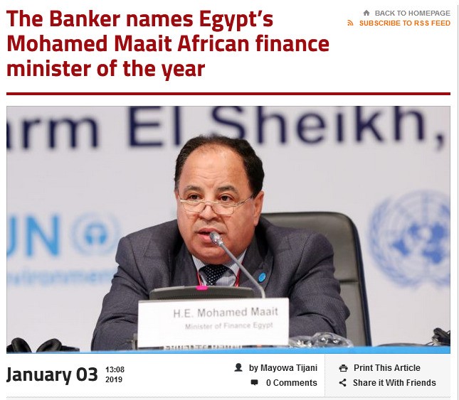 مجلة ذا بنكر (The Banker ) التى تصدرها الفاينشينال تايمز تختار د.معيط للفوز بجائزة أفضل وزير مالية لعام ٢٠١٩ عن قارة افريقيا
